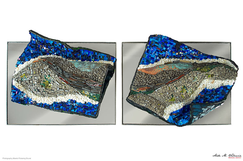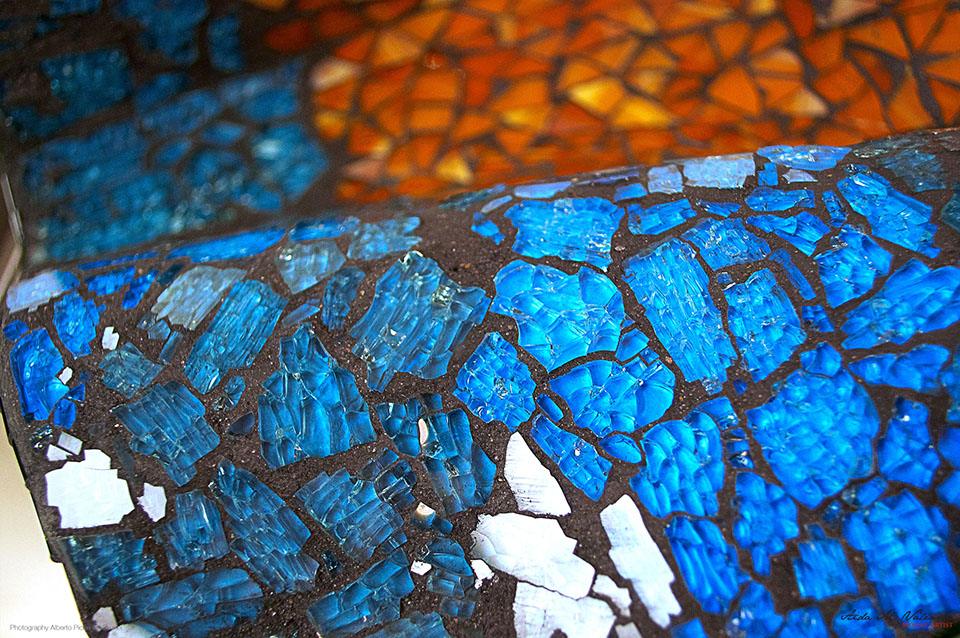 Byzantine smalti, copper, stone, marble, glass and recycled glass.